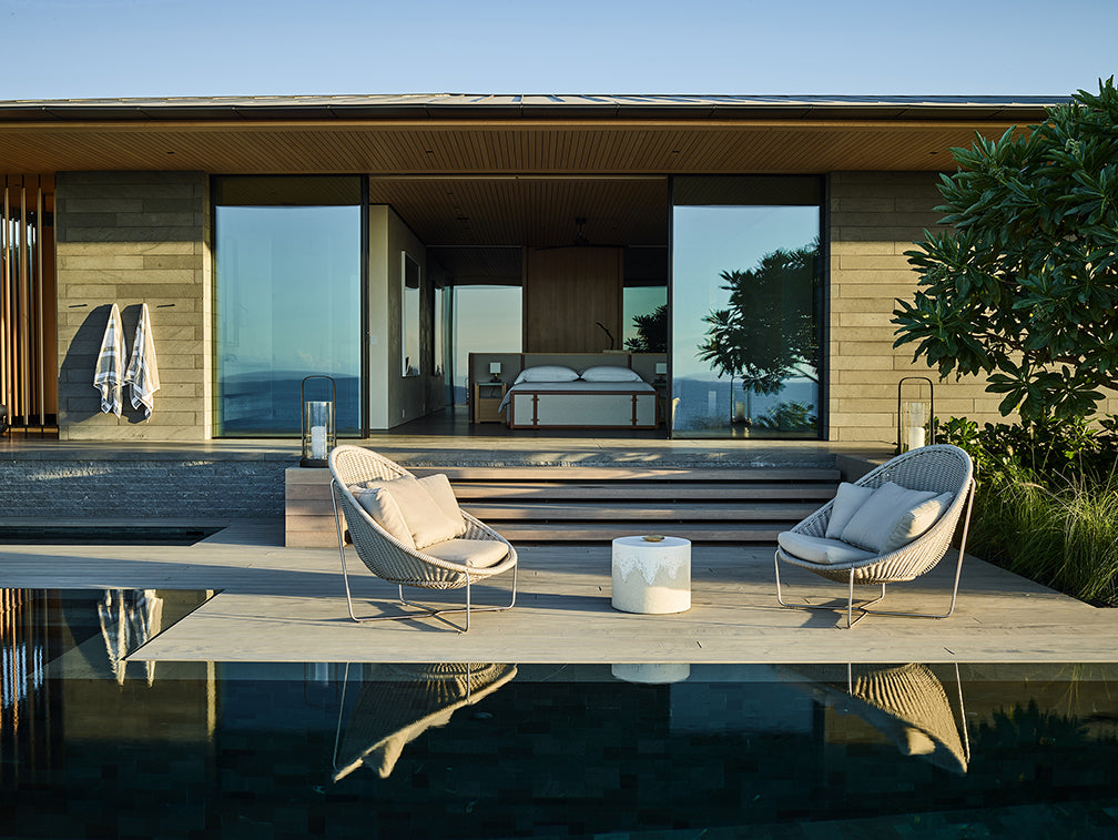 Beyond the brown Corten steel panelsâstanding like walls and reminiscent of installation artist Richard Serra's workâthe family's perfect and private paradise finally begins.
